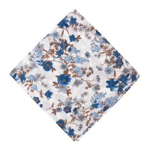 Corbata 100% seda natural estampada de color azul con dibujos de cachemir en tonos azules.