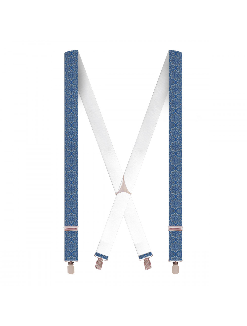 Tirante elástico azules con dibujos de rosetones o mandalas en celeste.